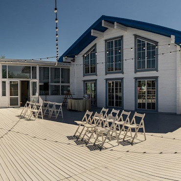Загородный развлекательный комплекс находится на частной огражденной территории, где на уличной площадке можно организовать церемонию.